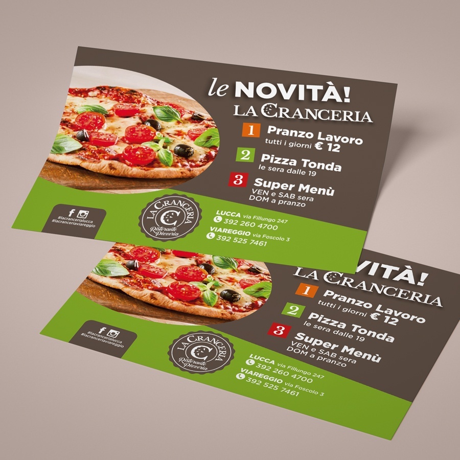 Comunicazione novità La Cranceria di Lucca e Viareggio con poster, volantini e post per i social