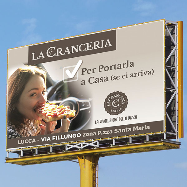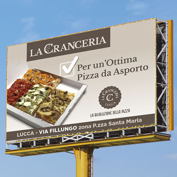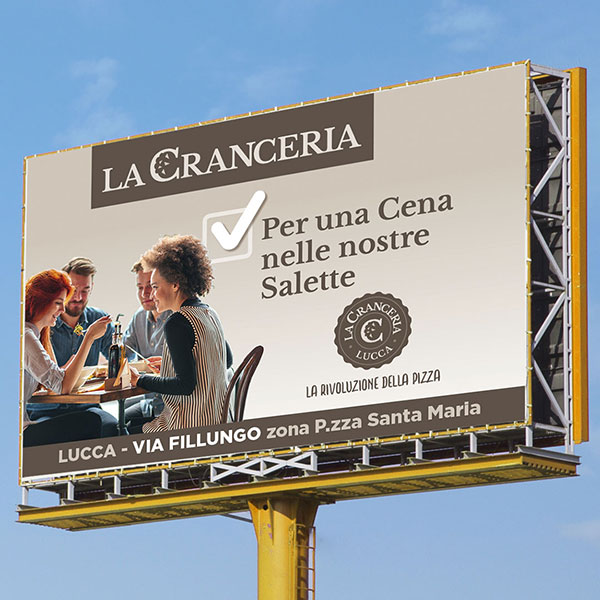 Grandi affissioni per promuovere i servizi che La Cranceria offre ai suoi clienti.